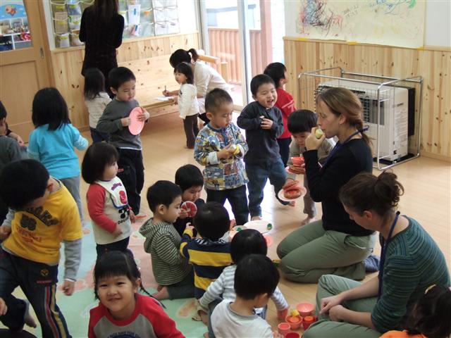 × [PR]上記の広告は3ヶ月以上新規記事投稿のないブログに表示されています。新しい記事を書く事で広告が消えます。 今日のどんぐりさんは! 「交際交流」の2回目!! 今回は、ウイットニー先生がお友達と来てくれました!! この、人だかり・・・。 おままごとを一緒にやっています。 ここでの会話は 子ども「はい!ど~~ぞ」 ウィ「Thank You!」 子ども「はい、たまご!」 ウィ「Oh!egg!!」 なぜか成立する、会話とコミニュケーション・・・・。 そして、お互いに笑顔! 場や空間、遊びを共有する大切さも、ひしひしと感じますね。
