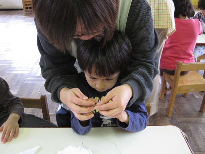 さぁ!さぁ! どんどん行きましょう!! 「ほんちょう保育園」と「どんぐりさん」の 初のコラボ企画は「コレ!!」 ユンボ体験試乗会?? 今年新たに登場の「どんぐり広場」内の「どんぐり畑」の整備に 登場した「ゆんぼ」に体験試乗しました!! この体験はなかなか出来るものでは無いですね!! この笑顔!! そりゃそうでしょ~~!! 男のロマンみたいなものがありますから・・・・。 なんだ?このどんぐりマーク?? 見つめる、ほんちょう保育園のお友だち。 もちろん、バスにも一緒に乗りました!!! 子ども達は、すぐに仲良くなったのでした・・・。 不思議なもので、何年も前から知っていたお友だちのごとく 自然に、名前で呼び合い 笑顔で打ち解ける この良さを、大人はいつの間に無くしてしまったのでしょうか・・・。 大人は、何かにつけて、先入観などで構えすぎるから・・・・。 自分にも・・・無くなっているような気がします。 無くさないように、努力はしているのですが・・・ね。 少しだけ、手の写真を・・・。 ほんちょう保育園の年長さんは、自分で縫い物をします。 針の穴に、糸を通しています。 これから、こいのぼりを縫います。 そんな時には、必ず、手と手の触れ合いがあります。 手と手が触れ合う事の大切さを、忘れていませんか? その手とその手を通じて、心が触れあう 心が触れ合うと、少しだけ相手の気持ちがわかる。 その繰り返しをすることで、心を通わせる。 子ども達と話をするときには 何かにつけて、手をつないで目を見て 話をするように心がけている 手が無理なら抱っこしてでも 一度では無理でも、何度か繰り返す事で・・・・ね。 良くわからないけれども、心を通わせたいのであれば 最初の一歩は、スキンシップなんだと思う 手を触れたその人の手が 暖かったのか ガサガサだったのか 大きかったのか そんな記憶は残らないけれども その人と手が触れ合ったという事実と その人の心の一部と触れ合えた記憶は 残る。 そんな、心に残る保育を出来る環境と内容に 向き合って行きたい。 懐かしい歌を、お届け!! 強い風に立ち向かってみようと思える歌です。 強い風に 散会!! PR