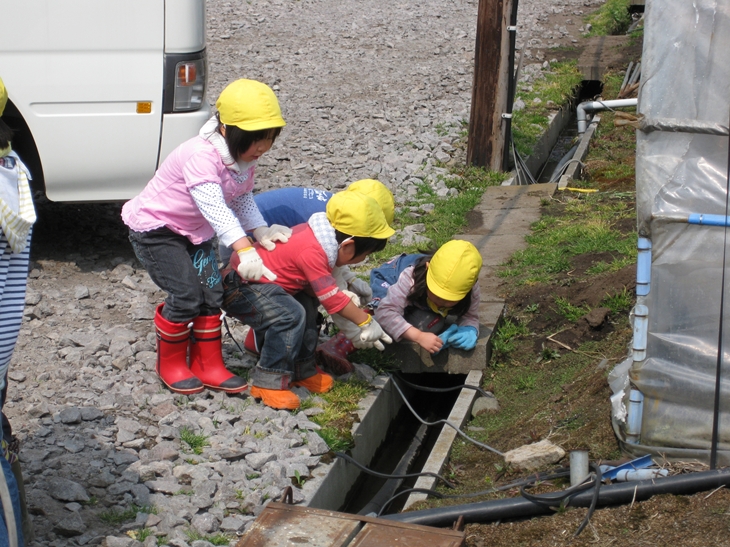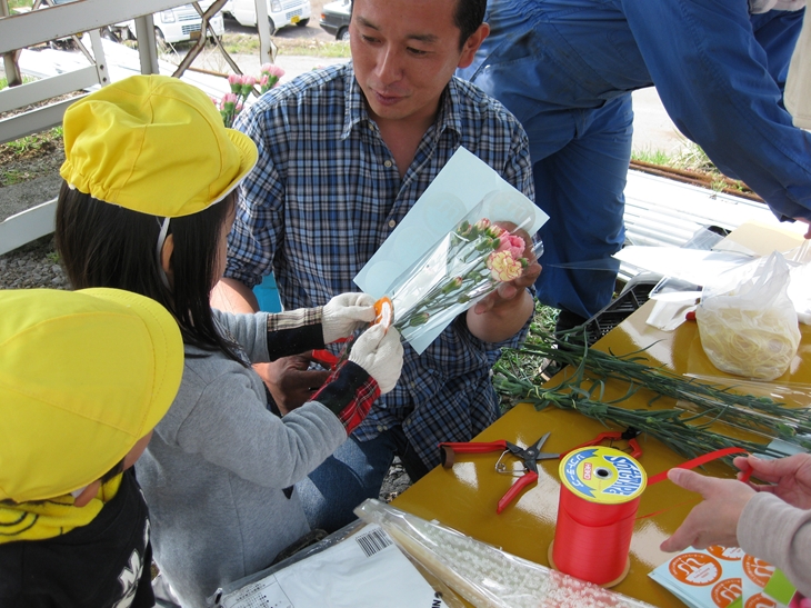 午前中は「こどもの日」の会! 午後は森のようちえんの皆さんが「花摘」に! まずは、「こどもの日」の会 何は無くてもいつも大切だと思うことは なぜ、お祝いするのか? どんな意味があるのか? どんな言い伝えがあるのか? 先生がお話ししてくれます。 それが大事。 美味しいお菓子も大切。 ちゃんと座ってお話を聞く事ができるお友達も偉いね!! さて、こちら森ようの皆さん ビニールハウス(巨大)!! 今回は、農家さんのご協力の下に 「花育(はないく)」です!! 農家の方と一緒に、母の日用のカーネーションを はさみを使って刈り取り その後、プレゼントできるように花束に!!!! 子ども達の頑張りと 農家の方の優しさが詰まった 自分だけの花束が出来ました!! 花束を手にした子ども達の 「お母さん、喜んでくれるかな?」という言葉に 全てが凝縮されているような気がします。 それだけであり それが全てです。 他に何か必要でしょうか? 最高の体験であり 最高の言葉であること 以外には何も・・・・ね。 あっ!・・・・・・。 他にも楽しい事を見つけてしまった方々の写真です・・・。 おたまじゃくしが、いたとか、いないとか・・・。 そういうのも、えんちょうは大好きです。 これも、大切。 少し早いですが 世の中のすべての 「お母さん」と呼ばれる方々に この歌を贈ります。 「蕾」 いつもいつも 本当にご苦労様 家事も 子育ても お仕事も 良い母親で無くても 子ども達に「そっと」寄り添う事が出来るお母さんでいてください。 子ども達は、お母さんが思うほど弱くないです。 手を出して欲しいのではないです。 ただ、優しく見守っていて欲しいのです。 よろしくおねがいいたします。 今日から連休です。 事故や怪我、よけいな伝染病に気をつけましょう。 では、 良い連休を、お過ごし下さい。 解散。 PR