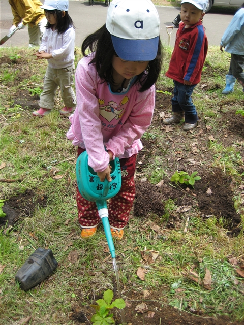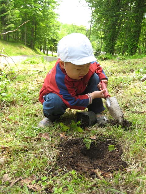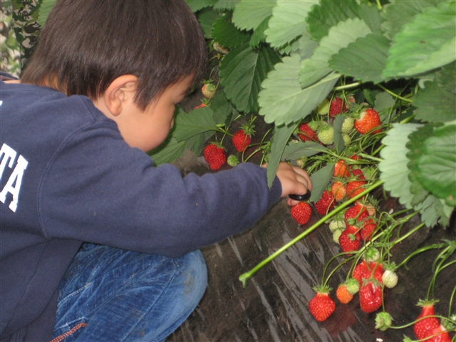 盛り沢山です。 では! 『いちご狩り』から!! 沢山の方にご参加いただき、いつも心から感謝しています。 毎年恒例のいちご狩りですが、今回で確か五回目位で 子ども達だけの行事の時もありました。 一番最初は、少しのお友達と行った記憶が・・・。 運動会の時もそうでしたが、沢山のご家族の皆様に集まっていただけると 嬉しくなります。 「あ~、これだけのご家族の方々にどんぐりは支えられているんだなぁ~」と ありがたいです。 ハウス内の様子!! 真剣ですよ~!! 美味しい顔って、どんな顔?? 「また来年も行こうと」心でおもう、『いちご狩り』でした。 ************************************************************************** お次は!! 『植樹in大沼』 こちらは、日曜日に「大沼セミナーハウス」横の山林での 植林の様子です。 まずは、穴を掘ります。 苗木をポットから出します!! このときにポットを「もみもみ」します。 植えたところを「ギュ!ギュ!」と、しっかり押します。 最後に、いっぱいお水をあげて完成!!! 自分の植えた苗木の絵を描いたり 外で、お昼ご飯を食べて帰ってきました。 みんなが、大きくなる頃には、どうなっているかな? 記念に残るから、毎年見に行っても良いよね! ******************************************************************** やっと、今日のどんぐりさん!! 今日はお天気が良かったですね!! きのこ組さんは、午前中の日差しがそんなに強くないうちに・・・。 お庭の芝生を満喫!? 気持よさそうですね~!! ひさびさの「森のようちえん」の方々は 「八郎沼」に出没!! 「???」 「おたまじゃくし(小)」が、うじゃうじゃ・・・。 「???」 「おたまじゃくし(大)」も、うじゃうじゃ・・・・。 なにやら、捜索中の「森よう」の方々です。 「お~~~、すご~~~い!」 「ふ~~~ん」 「へぇ~~~」 「なんだ?これ?」 「どうして?」 「どうなってるの?」 を、日々積み重ねていて欲しいと、いつも心で願っています。 子ども達の気付きには、ヒントは出せても、答えを教えてあげるわけには・・・。 答えを出してしまうと、『気付き』では無くなってしまうから・・・。 がんばれ!!「森よう」のお友達!!! 君たちなら出来るぞ!!信じてますよ!!! 週末に凄惨な事件がありました。 子ども達の成長過程に触れさせていただく仕事をする者として 「人の命」 「自分の命」 の、大切さは伝えて行きたいと、常々思っています。 「命まで、1と0で出来ているデジタルで処理は出来ない」 知らず・知らずに人間らしさを、デジタルに奪われていることに 気がつかない、大人たちへの警告の意味を感じます。 『あなたは、電話で話すよりメールで済ませる方が 気楽で良いと思っていませんか?』 『直接話すべきことも、メールで済ませていませんか?』 テレビで、精神学の権威の先生がおっしゃっていましたよ 「彼だけが特別ではない、上記の部分を漫然と行なっている 人は、同類です。その大人たちに育てられている子ども達は・・・。」 と・・・・・。 「なんで、こんな事件が起こるような国になっちゃったのかな?」という 言葉を良く耳にしますが、その根はとても深くてそこらじゅうに 広がっているような気がするのは、僕だけでしょうか? 犠牲者の方には、心からご冥福をお祈りいたします。 PR