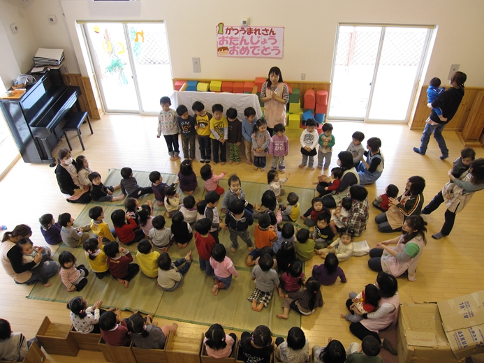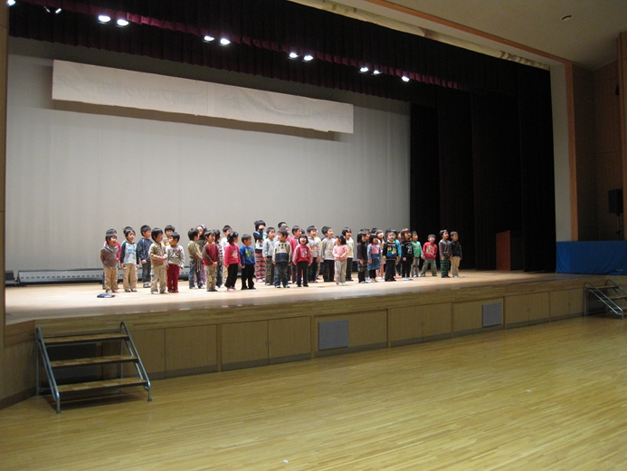 そんな、状態なのに えんちょう日記をのぞきに来て下さる方には心からの感謝を・・・。 現在、どんぐりでは 2月14日の「どんぐり de SHOW」に向けて 日々楽しい事満載です。 おっと、一応ご説明を・・・・・ 「どんぐり de SHOW」とは、どんぐり流の発表会で~す!! 本番はココでやりますよ!! 広いね~!! 何が、大事って 毎年のようにお伝えしていますが 今現在、進行中の「過程」が大切 本番の結果がどうこう、ではないのです。 お友達と先生たちと楽しみながらも 少し頑張ってみる いっぱい、褒めてもらえる 少し、上手に出来たら 自分の大好きな人たちに 見て欲しい!! いっぱい、褒めて欲しい!! ただ、それだけの、一番単純で、一番大切な気持ち それを、我々もご家庭の皆さんも忘れてはいけないと思います。 今日は、1月生まれさんのお誕生会でした!! みんなで、お祝いしましたよ!! おめでとう~~~!