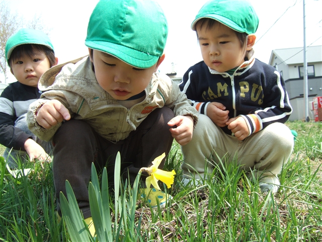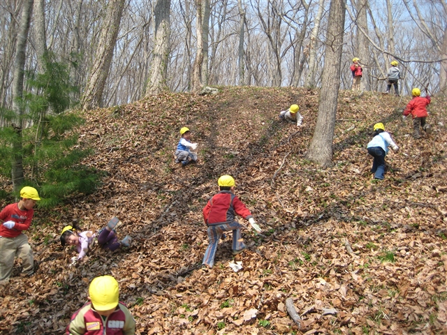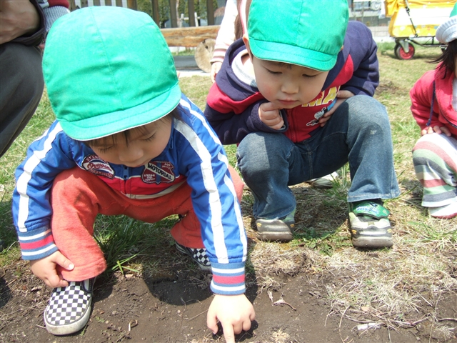 写真が溜まりに溜まって・・・。 言い訳する時間も無いので えんちょうが勝手に決めた決定事項のみ お伝えしますので、よくよくご確認下さい・・・。 (↑謝る姿勢は、全く見られません・・・・。) 本日より過去にさかのぼって日記を書きます。 え~、本日は真に勝手ながら 4月20日日曜日及び4月21日月曜日です!! さぁ、行ってみよう!!! (↑ここに来ても、謝る姿勢はありません) 4月20日日曜日に「森のようちえん」の面々は 「マイ箸」を作りに、大沼に行ってまいりました!! 見てあげてください、真剣な表情で作る自分の宝物です!! 親子の手の触れ合いや、関係を垣間見る事が出来る写真ですね! 箸を頑張って作っていると「ぽ~~~~~!!」と SLの汽笛!!! 頑張った、ご褒美!かな? 真剣に見つめる、森ようの面々でした!! SLも今度見に行こうね!! 初夏を思わせる、日差しの中での一日でした!! さぁさぁ、行きますよ4月21日月曜日だ!!! 怒涛の「森のようちえん」in大沼森林公園です!! 「いゃっほ~~~~~~~い!!」 一人のお友達が、この坂が面白い事に気付くと わさわさと、移動を開始する森ようの面々 登ったと思ったら、ゴロゴロと転がり 葉っぱだらけ、ズボンはあっという間に茶色に・・・。 でも、転がっているお友達の笑顔に注目!! 「森のようちえん」とは、園の教育目標に向かい それを達成するする為の手法です。 「モンテッソーリー」 「シュタイナー教育」 といった、ものと同じと考えていただいて良いと思います。 それぞれの教育手法には理念や願いが込められています。 「森のようちえん」では、「環境教育」を基本として、子ども達が 自分で考え自分で行動できる力、人間本来の自然との関係を 築く(気付く)事が出来るように、との願いを込めています。 どんぐり「森のようちえん予備校」の方々の活動も 見逃せませんよ!! お散歩に行くだけで、発見いっぱい!! 「お~~~」「ほぉ~~~~」 子ども達の「気付き」は、とても大切です。 「不思議だなぁ~」と言う気持ち、それを一緒に同じ目腺で 受け止めてくれる、大人の存在が、どんなに大切なものか 我々大人は、忘れてはいけないと思います。 更新が遅くなって、ごめんなさい。 明日は4月22日+4月23日で・・・。 ねっ。 就寝・・・。 |