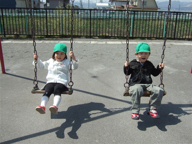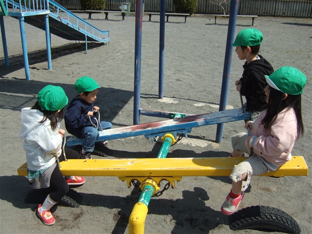 公園にお出かけですよ!! 昔ながらの遊具は子ども達に人気があります。 良い表情が、素敵ですね!!! 公園=ブランコ・シーソー・たいこ橋?? みたいな、勝手な方程式を持っていました・・・。 ところが、最近は公園で事故が起こるたびに 子ども達の遊具が撤去されたりしています。 どうなんでしょう? 危ないから撤去しろなどと、大騒ぎして子ども達から 遊具や自由を奪い取っているのは一部の大人では? と思うのは、えんちょうだけでしょうか? 子ども達がそんなことを言うとは思えませんしね・・・。 挙句の果てに、『遊び場が無い』なんて言って文句を言っているのが 子ども達から遊具を奪った大人たちで無いことを祈るばかりです・・。 さて、ここらで「森のようちえん」の風情な写真を!! 良い感じですか? 良いですなぁ~!!! 撮影はどんぐりの篠山紀信ことS・T先生と (↑だれ?ねぇ?だれ?なんで?) どんぐりの加納典明ことW・T先生です。 (↑だから?だれ?) さぁさぁ、明日も頑張りましょう!! すべての出来事と、すべての人に感謝しながら!! か~いさ~ん!! |