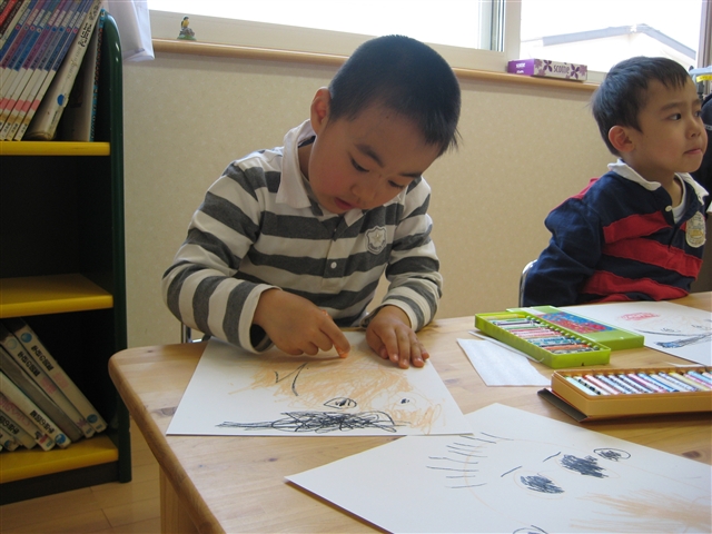 もちろん、絵も描きます。 どうです?この真剣なまなざし!! みんな真剣に「お母さんの顔」を描きましたよ!! 「森のようちえん」はお外ばかり・・・と、誤解を受けそうなので・・・。 みんな、上手にかけたので、どんぐりのどこかに貼ってあげたいと 思っています。 今日は、所用で渡島支庁に出かけました。 その時、このすばらしいお天気を満喫しようと、某保育園のお友達が散歩をしている 場面に出会いました。 信号の無い、交差点に差し掛かり、子ども達が道路を横断 しようとしていたので、前の車のドライバーさんが 子ども達を先に渡らせようと、止まってあげていました。 「はぁ?」はそこで起きました!!! その際に、子ども達と一緒の先生は子ども達が渡りきるまで 待ってくれていた、ドライバーさんに対してお礼を言うでもなく 会釈をするでもなく、「ツラ~」と過ぎて行きました・・・えっ?なに? 僕は、目を疑いました・・・。 子ども達に対して、挨拶やお礼の大切さを伝えなければならない 先生や保育士という立場の人間が、全く子ども達の見本になれて いないどころか、悪い見本になってしまっている現状を目の当たりにして かなり、嫌になりました・・・。 それも、若い新人の先生ならまだしも、ベテランの先生だから・・・。 子ども達だけでなく、若い先生の見本にもなれないのか!!! 心の中では「お前なんて、保育士やめてしまえ!!!!!」と・・・。 先生の資質が問われるだけでなく、園のレベルを露呈していますよね・・・。 というよりも、一人の人間としてどうかと・・・。 同業の人間の中に、そういう人がいると言うだけで、嫌気がします。 感謝する気持をもつ 感謝の気持を伝える 人間として、大切なことを、どんぐりのお友達にはしっかりと 伝えたいと思っています。 解散・・・・。