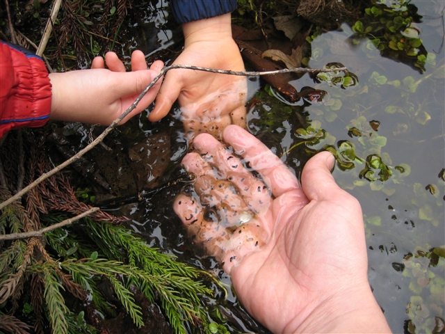 かえるのたまごがあったよ! 触ったら、「プルプル」してたよ!! 1日一つでも、1週間に一つでも構わない。 どんなに小さくても良い、「発見、驚き、喜び」を 子ども達と共有して行くのが 「森のようちえん」です。 だから、何も焦ってません。 遊びの天才のお友達が15人もいることですしね!! 今日の「森のようちえん」のお友達を見ていて、安心しました。 いつの時代も、子ども達は遊びの天才であることを再確認できました。 この先の楽しみが増えましたよ!! おっと!! 「森のようちえん」予備軍のどんぐりのお友達も 楽しい遊びをして過ごしていますよ! やっぱり、こういう空間は子ども達にとっては 最高の遊び場で、大好きな空間なんでしょうね!! えんちょうは先日、長男の小学校の参観日に行ってきました。 まぁ、我が子が・・・なのはね・・・。 「がっかり」と「頑張ってるな」を感じてまいりました。 その中で、ふと思ったのは どの世界にも「ジャイアン・スネヲ・ノビタ・シズカちゃん・デキスギ君」が いるのは、当たり前なのに、この国の学校のシステムは 全生徒を「デキスギ君」にしようとしているように感じました。 その考え自体は、別に悪くはないと思うのですが ジャイアンにデキスギ君になれ! ノビタにデキスギ君になれ! って、無理がないかなぁ~?と思いました。 どこの世界も、すべてのキャラクターが存在するから バランスよく回って行くわけで、そのバランスが崩れると 妙なことが起きる気がします。 それぞれのキャラクターの良さが引き出される 環境を用意する大切さもあるのかなぁ~と 教室の後ろから、我が子に「ちゃんとやれ~」と 口でぱくぱくと指示しながら、考えました・・・。 さぁ、もう少し、頑張ろうかな。 解散。 PR