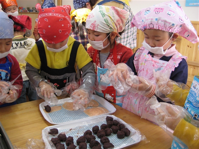 本日「ひなまつり」は、写真の勢いで・・・。 ご覧ください。 ただ、写真撮るだけでない ただ、ひなあられを食べるだけだはない そういう部分は、先生方に感謝です。 先生の説明を聞くと、雛飾りの意味もさらにUP! もちろん、写真も!! どんぐり自家製「さくらの葉の塩漬け」 これがあると言うことは!! そう!毎年恒例!! 「さくらもち作り」Byうさぎ組さん おいしかったよ!ありがとう!! さくら湯と一緒にご賞味あれ!! 大きなさくら餅は、園長作です・・・・。 補足説明!! このさくら餅は、特に関東近辺で食べられるものです。 関東のさくら餅は焼皮のものです。 関西・九州は道明寺ですね! 北海道は混在かな? 行事はやっぱり、「過程」や「内容」を中心にね! 「結果」はついて来るものであって、求めるものではないからね。 そういえば、昨日の「ウルルン」でドイツ「森の幼稚園」が出てましたね! 番組の内容がどうこうと言うことよりも、「森の幼稚園」に通う子ども達の 目がね・・・・。 子どもたちは、こうあるべきで・・・。 子どもたちは、こうあって欲しい・・・。 やっぱり今の日本の教育はどこかで、道を間違がえていなければ 良いのですが・・・。 さぁ、引き続きレッツ残業!! 解散!