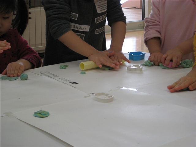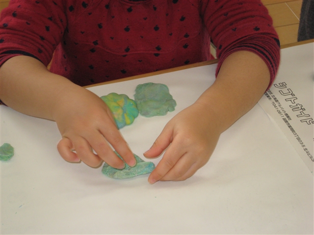 写真攻め!!? (↑誰ですか、手抜きだと言う人は(笑)) 今日は、「小麦粉ねんどで遊ぶ子どもたちの手」です。 皆さんは、自分のお子さんや他のお子さんの手に 注目したことはありますか? 形作る のばす けずる つっこむ・・・? たたく!! つまむ と、色々です。 こういう指先の動きや、指先の感覚も脳を育てます。 最近では、楽しい「小麦粉ねんど」も手が汚れるので 嫌うお友達がいたりしますが、もったいないなぁ~と思います。 「汚いから、やめなさい!」 「汚れるでしょ!!!」 「着ているものが汚れるからやめて!!」 遊びに出かけると、よく耳にするお母さんの言葉・・・・。 気持ちもわからないでもないですよね ひどく汚れれば、手洗いして→洗濯機かけて→ 干して→たたんで→たんすにしまう・・・。 大変ですよね・・・。 えんちょうもよく「洗濯物ぐらいたたんで!!(怒)」と よく怒られます・・・・。 子どもたちから、このような指先の運動や 感覚を鍛える場面を奪い取らない程度に 心で「頼むから、汚さないでく~れ~!」と願いましょう。 それでも、汚れてきた時はあきらめて下さい・・・。 お子さんが大きくなったら「手洗いの大変さ」を 一緒に体験させてあげましょう!! ほら!手洗いも指先の運動や感覚を鍛える場面ですよ!ねっ! 体調がすぐれない、えんちょうでした・・・。 かいさん!! PR