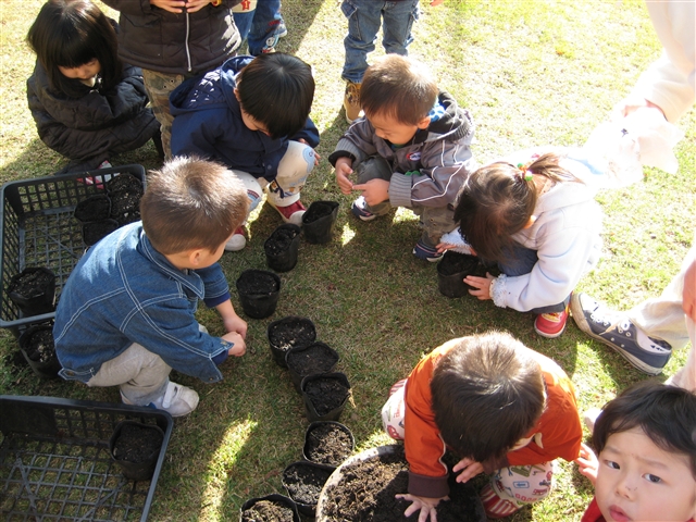 「雪が降りそうなこの時期でもこんなことしてます」です。 お友達の手が素敵な状態な訳は? コレを (↑なに?) こんな感じで作ったから・・・。 (↑どんな感じ?) 今回は「きたこぶし」の種を植えました。 芽が出て、植樹して、木になり花が咲くようになる頃には この、お友達たちは何歳になって何をしているのでしょう? どの木も、同じように大きく成長し花を咲かせます。 子ども達の成長は木の成長と一緒です。 成長を見るということは、何を見ることだと思いますか? 「どんな花を咲かせたのかという結果?」 「花を咲かせるために、どんな努力をしたのかという過程?」 成果が伴わなければ、努力したりする事には意味が無いなんて 寂しいい事は言わずに・・・。 この国は昔から結果・成果主義だったのでしょうか? それとも・・・。 目先の事ばかりに気をとられずに 子ども達の成長しようとする姿を (↑ 成長を見るのではなくてね。) 優しく見守りたいですね。 解散!! PR