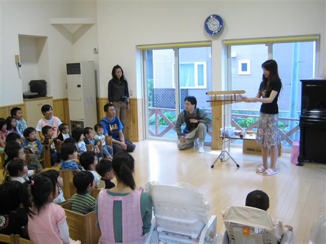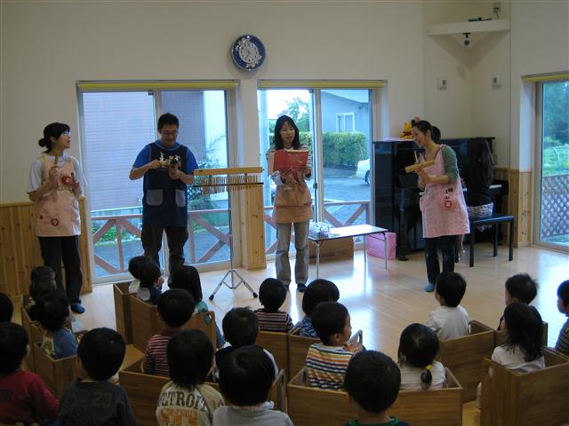 「音楽とあそぼう」です。 ピアノの先生が、楽器をもってどんぐりに遊びに来てくれました! 夏井先生です!!皆さん覚えて下さいね!! 先生の持ってきてくださった楽器や、流れるように上手なピアノに どんぐりの子ども達は、釘付け!? ↑先生が説明して下さっている楽器は、何か分かりますか? 『バーチャイム』です!!知ってました? (↑えんちょうも、打ち合わせのときに始めて知りました・・・。) 興味津々なお友達の図 夏井先生のピアノに合わせて、どんぐりの先生たちも登場!! 楽しい楽しい時間でした!!! 昨日・今日で話題の中心の「コムスン」さん・・・。 いろいろと、取りざたされていますが、えんちょうなりの意見を少々・・・。 「コムスン」は「グットウィルグループ」の中の会社で その「グットウィルグループ」には コムスンの他に (株)グレースという東京の認証保育所「マミーナ」を運営する会社 株式会社コティという「ももちゃんナーサリー」 含まれています。 コティさんは、もともと札幌の会社ですが、色々と巡って 「グットウィルグループ」にいます。 そうなんです、ご老人や子ども達との関わりの中で利益を出す民間企業なんです。 大きな会社がこう言うことをしても、子会社に業務を譲渡すれば済むって・・・。 事業所の数を減らして、一生懸命働いている人はどうなるのでしょうか? どっちにせよ、お偉いさんは痛くも痒くも無い、ちょっとテレビでも出て 頭下げれば良いんでしょ? トカゲの尻尾きり見たいなことして・・・。 そんな、会社が子育て関係の事業をしている・・・。 どんぐりも同じ、子育てに関わる民間企業ですが 良い迷惑です。本当に・・・。悲しくなります。 そこにいる子ども達ではなくて、子ども達の人数=会社の利益のような 売り上げを優先に考えるのでればこの仕事の分野に進出して欲しくないです。 自分の保身ではありません。 子ども達のためにです。心からお願いいたします。 ほんとうに・・・。 話し変わって!! 毎回、大好評の「えんちょうのつぼ」のコーナーです!! (↑素直に、初めてで、今回限りかもしれないって言えば良いのに) えんちょうは、野球が好きです。 えんちょうは、挑戦する人が好きです。 えんちょうは、すぐには、諦めない人が好きです。 えんちょうは、TOPGUNが好きです。 と、言うわけでこのCMに鳥肌が立ちました。 ただただ、何回も見てしまう・・・。 なんでしょうね・・・。 「俺も頑張らなければ!!!!」のような気持ちになります。 あ~~あ、また自己満足の世界だ・・・・。 この日記って、意外に見ている人の居住地域が広いの知ってました? 僕の把握している一番遠い人(海外は除く)は 多分、東国原知事のところにいる方です。 いつもありがとう!! このページを、いつも?たまに? 開いてくださる皆さんには、心から感謝しています。 ほんとうにありがとうございます。 多分、こういうCMのようなものがあると、まだまだ 頑張って行けそうなえんちょうでした・・・。 就寝・・・。
