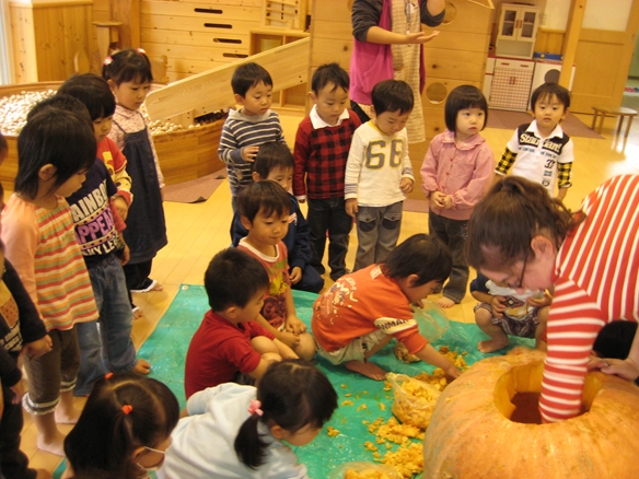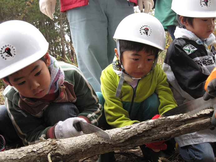 「間伐見学!!」 「ウッドチッパー」という機械です!! 木があっという間に「ウッドチップ」になるという すごい機械です!! 踏み心地はいかがぁ~~? 真剣な表情の皆さん・・・。 みんな、上手にのこぎりを扱っていましたよ!! 皆さん知っていました? リスが松ぼっくりを食べると エビフライみたいな形になるんですよ~!! 正確には、松ぼっくりの中の実を食べた後ですが・・・。 協力をしてくださった皆様 ありがとうございました。 心から感謝しております!! その頃、森Jr.の皆さんは ボビーさんとミランダさんと ハロウィンかぼちゃの製作中!! 今週末が楽しみね!! 誰ですか?? えんちょうにしちゃう人は!!? さぁ、今週の森ようさんは 面白いこと目白押し!! 明日は「さつまいも収穫!!」 ちゃんと大きくなっているかな?? 乞うご期待!! 解散!! PR