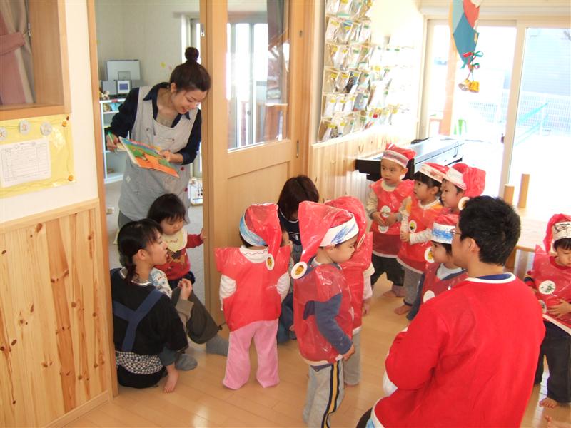 × [PR]上記の広告は3ヶ月以上新規記事投稿のないブログに表示されています。新しい記事を書く事で広告が消えます。 今日のどんぐりさんは! 「サンタクロース出没注意!!」です。 ことり組・りす組のサンタクロースさんが きのこ組に、絵本のプレゼントをしました!! 写真には写っていませんが、他ににもサンタさんがいっぱい!! とても可愛かったですYo! どんぐりの、子ども達の「本物のサンタさん」に対する 期待感は、最高潮に近いのではないでしょうか。 12月22日は乞う、ご期待!!