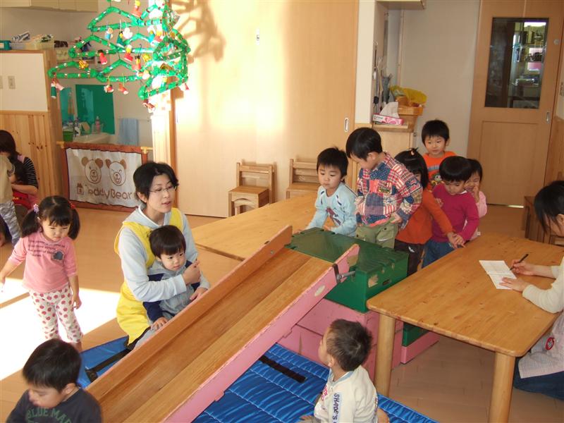 PR きょうのどんぐりさんは! 「滑り台遊び」です。 とってもシンプルなこの遊びですが 実は、1・2歳の子ども達には大きな意味があります。 ただ、滑るのが楽しいだけではないのです。 なぜか、わかります? 写真の中にヒントが!! あっ、わかりました?