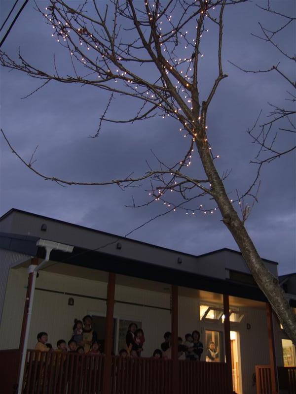 今日のどんぐりさんは 「クリスマスの電飾点灯式!」 見にくいかもしれませんが、 木には「ピカピカ」 子ども達は、ベランダで「わ~~~!」 写真が見にくいのは、撮ったひとが下手なだけです。 (↑えんちょうが撮りました・・・。一応『夜景モード』で・・・。)