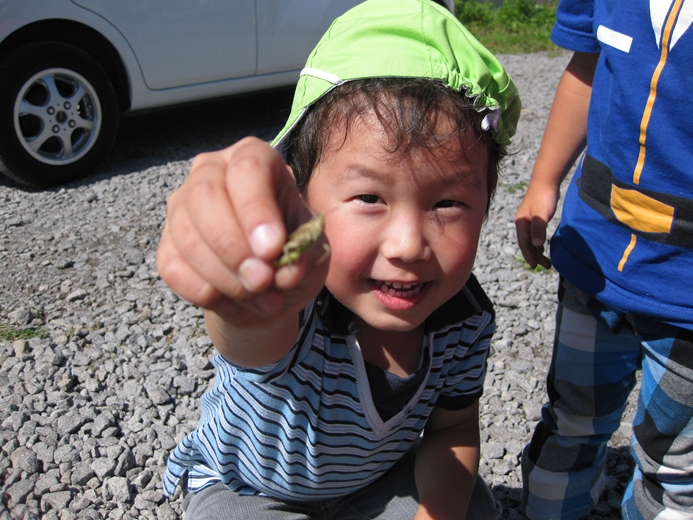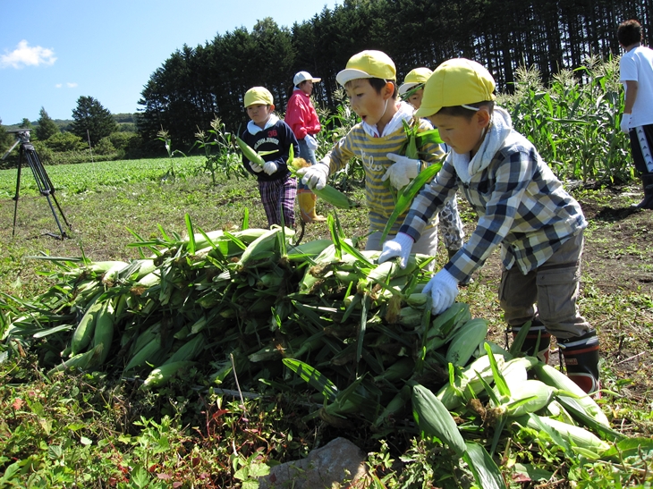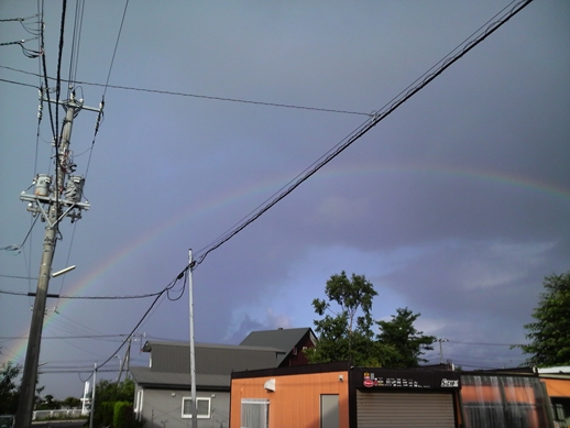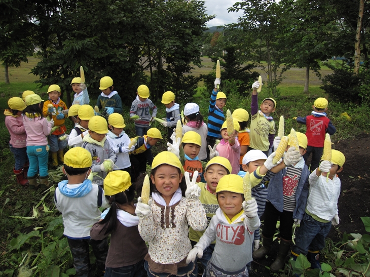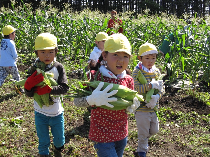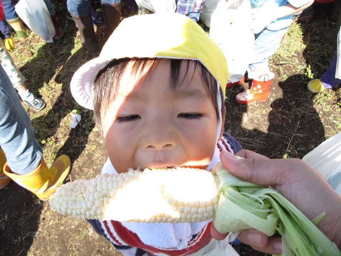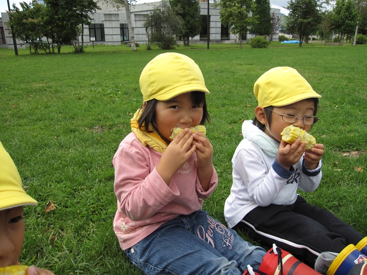 久々に見た立派な「虹」! あわてて、携帯で撮影してしまいました。 今日は、朝のうちはこのほかのタイミングでも 虹が何度か見えましたよね!! 皆さんは、見ることが出来ましたか?? さてさて、今日の森ようの皆さんは!! ネイパル畑で、「とうもろこし」の収穫!! お世話にお世話を重ねた 一大?イベント?? 「とったど~!!」 採ったら、美味しいうちに その場で調理!! 「ぐつぐつ・・・」 何が、美味しいって そりゃぁ~ 大事なとうもろこしで 採りたてで お外でたべて そんなに素晴らしい、調味料は無いです。はい。 朝晩はめっきり、気温が下がり始めましたね。 いつまで、緑色の自然の中で 走り回る事が出来るのでしょうか・・・。 あ~、とうもろこし美味しかった!! 解散!!