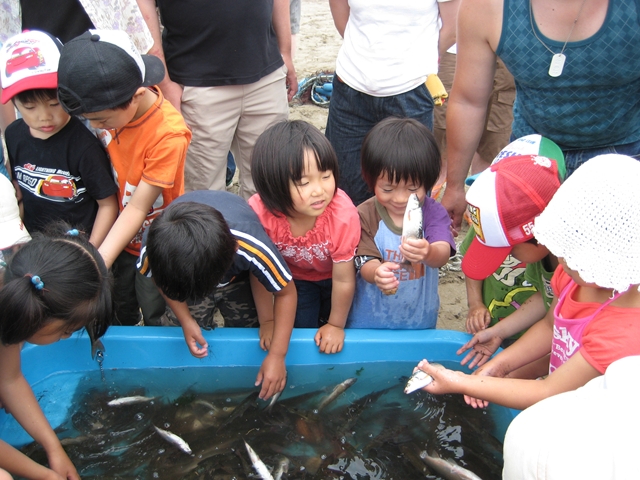 「ワッショイはこだて」の「子どもイカ踊り」の 打ち合わせに参加して参りました。 昨年の降雨による、悔しさもあるのでしょうが 今年こそはの気持ちが、さらに強くなりました。 子ども達には、お祭りの楽しさや雰囲気を ぜひ味わって欲しいです。 日本の伝統的なものが、継承される事無く 姿を消している今だからこそ・・・。 参加することに意義があり 参加すると何か得るものがあると 信じています。 何事も肌で感じることが一番です!! そして、楽しむ事が!! 昨日は「地引網」でした!! みんなで「よいしょ!よいしょ!」と引きました!! 「何がかかっているかなぁ~?」 かれい ひらめ はぜ かに えび ぼら あかはら などなど!! 大漁!!でした!! もちろん、触れ合っちゃいました!! あっ! かにさんは 恒例の・・・ 美味しくいただいたので、感謝!感謝! すいか割りも、楽しかったねぇ~!! 楽しい楽しい一日でした!! どんぐり「男組」の皆さん 参加してくださった皆さんに 感謝しています。 おかげさまで、子ども達や保護者の方の 沢山の笑顔を見ることが出来ました!! ありがとうございました。 それが、何よりです。 やっぱり、人間、笑顔でなくちゃ!! 自分も 周りの人も 幸せに出来る「笑顔」を大切にしたいですね。 ほんとうに・・・ よかった・・・ よかった・・・ 解散!!! |
