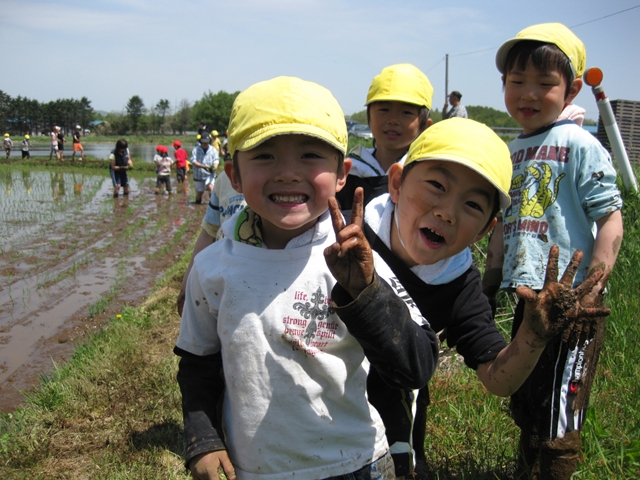 汗ばむぐらいの気温でしたね! 今日の森のようちえんの皆さんは 予告通り 「田植え」です~! 何が良いって、このロケーション!! 田植えドラマに出てきそうな・・・・ (↑なに?なに?) 駒ケ岳がきれいに見える場所でした!! 今年も軍川小学校のお兄さん・お姉さんと一緒に頑張りました! 田植えは始めてのお友達も 2回目のお友達も 田んぼに入る瞬間は、一瞬ためらうんです。 あっ!でも、嫌がって入らない人は、どんぐりにはいないようです・・・。 まぁ、入ってしまえば 約一時間 黙々と 苗を植え続け 終了間際には こんな感じや・・・・・ こんな感じですが・・・・ 皆さん、やりきった表情で!! ねっ! 子ども達のこういう表情が えんちょうのエネルギーの源でもあります。 あ~、次は何の時にこういう表情を 見せてくれるのかな?と、考えると ひとりで、ニヤニヤしまいます。 (↑あっ!大丈夫です。怪しい人なので・・・えっ?) こういう体験に、大義名分は必要ないことを いつも、痛感します。 今日は、子ども達の笑顔で終了!! しかし、良い天気でした・・・。 しつこいな・・・・。 解散!! PR