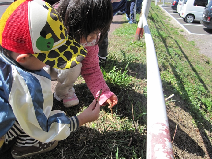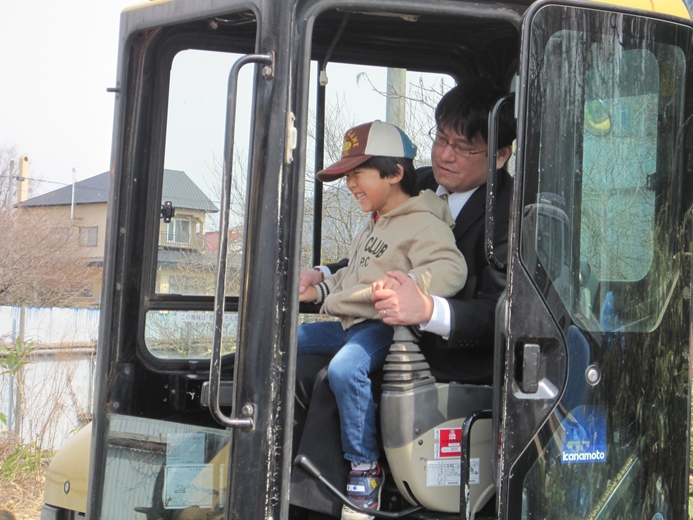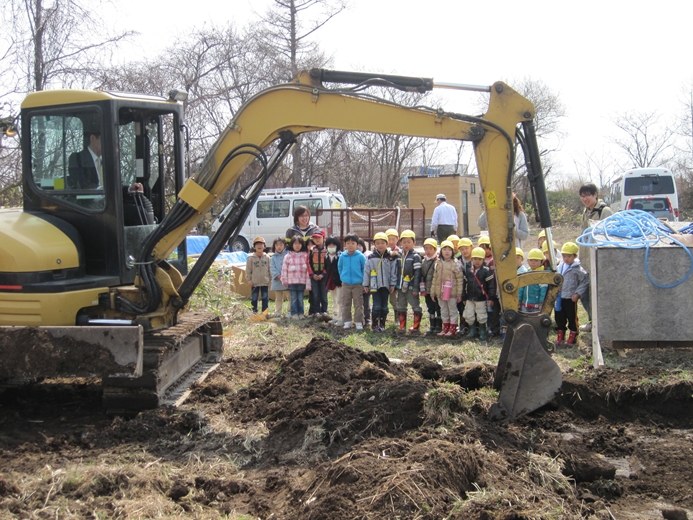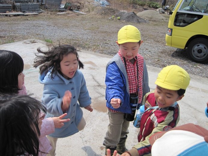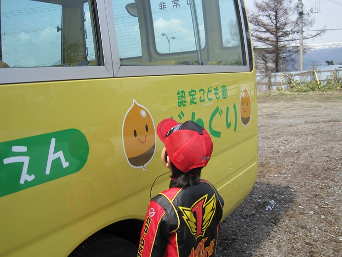 さぁ!さぁ! どんどん行きましょう!! 「ほんちょう保育園」と「どんぐりさん」の 初のコラボ企画は「コレ!!」 ユンボ体験試乗会?? 今年新たに登場の「どんぐり広場」内の「どんぐり畑」の整備に 登場した「ゆんぼ」に体験試乗しました!! この体験はなかなか出来るものでは無いですね!! この笑顔!! そりゃそうでしょ~~!! 男のロマンみたいなものがありますから・・・・。 なんだ?このどんぐりマーク?? 見つめる、ほんちょう保育園のお友だち。 もちろん、バスにも一緒に乗りました!!! 子ども達は、すぐに仲良くなったのでした・・・。 不思議なもので、何年も前から知っていたお友だちのごとく 自然に、名前で呼び合い 笑顔で打ち解ける この良さを、大人はいつの間に無くしてしまったのでしょうか・・・。 大人は、何かにつけて、先入観などで構えすぎるから・・・・。 自分にも・・・無くなっているような気がします。 無くさないように、努力はしているのですが・・・ね。 少しだけ、手の写真を・・・。 ほんちょう保育園の年長さんは、自分で縫い物をします。 針の穴に、糸を通しています。 これから、こいのぼりを縫います。 そんな時には、必ず、手と手の触れ合いがあります。 手と手が触れ合う事の大切さを、忘れていませんか? その手とその手を通じて、心が触れあう 心が触れ合うと、少しだけ相手の気持ちがわかる。 その繰り返しをすることで、心を通わせる。 子ども達と話をするときには 何かにつけて、手をつないで目を見て 話をするように心がけている 手が無理なら抱っこしてでも 一度では無理でも、何度か繰り返す事で・・・・ね。 良くわからないけれども、心を通わせたいのであれば 最初の一歩は、スキンシップなんだと思う 手を触れたその人の手が 暖かったのか ガサガサだったのか 大きかったのか そんな記憶は残らないけれども その人と手が触れ合ったという事実と その人の心の一部と触れ合えた記憶は 残る。 そんな、心に残る保育を出来る環境と内容に 向き合って行きたい。 懐かしい歌を、お届け!! 強い風に立ち向かってみようと思える歌です。 強い風に 散会!! |