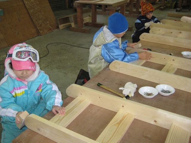 「my そり」を作りました!! 材料を組み合わせて~ ドライバーでねじ止めして~~ やすりをかけて~~~ 釘を打って~~~~ もう一度、ドライバーでねじ止めして~~~~~ かんせ~~~い!! さてさて、ちゃんと滑ることができるかなぁ~? どんな風に色を塗ってみよう? 楽しみはいっぱい!! 今日、「森のようちん」のお友達が使った道具はコチラ!! 確かに、危ないかもしれません。 でも、危ないからといって使う機会を持たなければ 出来るようになんてなりませんし 何が危険なのか なぜ危険なのか という、一番大切な部分が分かりません・・・。 道具の正しい使い方なんて、もっとわからない・・・・。 これは、道具の使い方だけでないと思っています。 危険から遠ざけるのが親(大人)の仕事なのでしょうか? 危険なことや物の本質を伝えるのが・・・・だと思いませんか? 様々な場面で「親が嫌だから」などと言う意味の分からない 親のエゴを子ども達に押し付けないで下さい。 いい迷惑です。 ほんとに・・・。 さて。 今日も、出血大サービスで残業中ですが ふと、『どんぐりに園歌って無いんですか』という先生の言葉を 思い出しました・・・。 無いです・・・・。 作ります・・・? (↑そんな、センスのかけらも無いくせに・・・。強がってみた・・・。) じゃじゃじゃじゃあ 既存の歌から投票で決めます? オリジナルの歌詞を追加してみたりして・・・。 (↑えっ?著作権法違反?どうなの?) まぁ、じゃあ、えんちょうの勝手なセンスで・・・。 勝手に選んじゃいました!! (↑本当に勝手にすれば・・・・。) 1番はこれ! We Will Rock You
