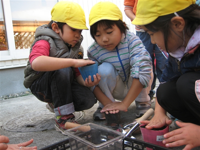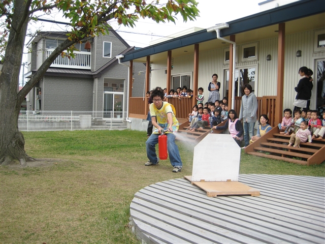 ポットへ様々な木の種を植えました。 「むらさきしきぶ」 「みずき」 「こなら」 「みずなら」 「とちのき」 などなど・・・。 自分でポットに土を入れて!! 丁寧に種を植えて 来年の春を待ちます・・・・。 大切なことは何なのでしょうか? 子ども達には何に気付いてほしいのでしょうか? 何を記憶の隅に留めて欲しいのか・・・? どんぐりのコンセプトである 「木育」「食育」「自然教育」には それぞれ、願いが込められています。 だからといって、声を大にして どんぐりでは「これやってま~す!!」という 必要はそれほど感じません。 でも、子ども達の記憶に残るように・・・。 大切なのは積み重ねる体験と記憶 だと思っています。 そうそう!!今日は「避難訓練」をしましたよ!! 今日の一枚はこれ!! 2日連続登場のT先生は!! なぜか、さまになる消火する姿・・・・。 もちろん、実践する機会は無いですが・・・・。 あっては、いけないですが・・・・。 昨日のニュースはこちら!! 保育園定員増へ基金創設
