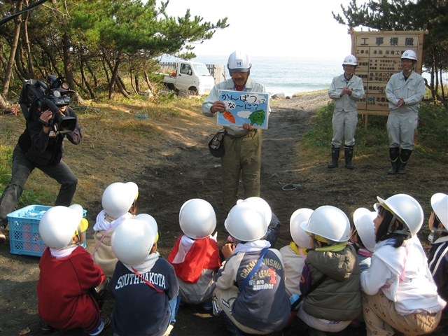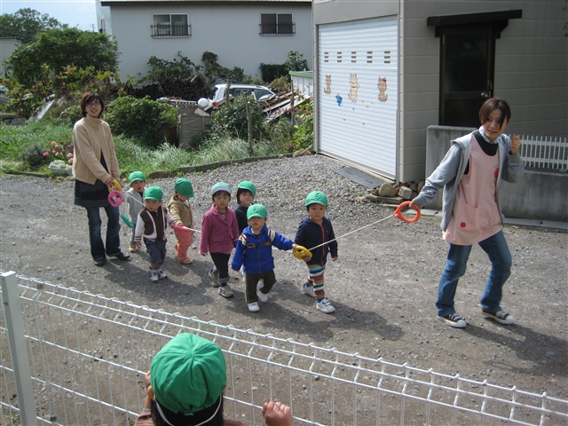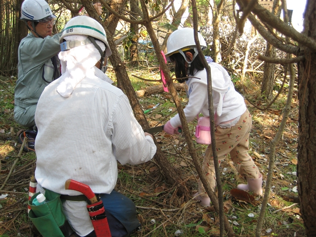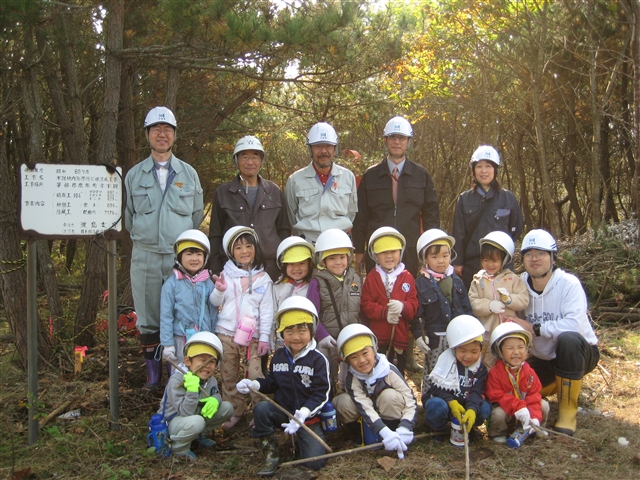 お久しぶりです。 久しぶりに体調不良です・・・。 さぁ、いい訳はそこそこに 今日の「森のようちえん」は!! 鹿部で間伐見学?体験?です。 まずは!「間伐の紙芝居!!」 間伐を分かりやすく説明していただきました!! (カメラさんが気になる??) さぁさぁ、それは置いといて のこぎりも体験したよ!! どんぐりでは、何にでも挑戦するぞ~~!! 「がんばれ~~!!」 なかなか出来ない、貴重な体験でした!! ヘルメットも似合ってる??? いつもいつでも思います。 どんぐりは、色々な方々のご協力のもと 成り立っているのです。 感謝の気持ちを忘れてはいけません。絶対に。 ほんとうに、ありがたいです。 渡島支庁の方々、(株)ワタナベ緑化の方々 ありがとうございました。 心からのお礼を申し上げます。 本格的に、色々なお仕事が増殖してまいりました。 多分、不定期更新になりそうです。 不定期更新になる前に 各クラスの様子も、どうぞ!! まずはきのこ組!! 先生に絵本を・・・・!! 上手に座っていますねぇ~!! お次は、ことり組 こちらも、上手にお散歩です!! りす組のお友達は 先生やお友達と手をつないで!! 何をしているのかな? うさぎ組さんは!! 何やら製作中?? 何に使うんだぁ~? それは、秘密!!! 秋深まる、どんぐりの様子でした。 もう10月も中旬・・・。 年末まで・・・・ 数えるのやめよう・・・嫌になる・・・。 さぁ!風邪引いても、そんなの関係ないぜぇ~~!! さぁ、また明日もがんばりましょう!! えっ? カメラ? 近いうちに報告しますね!! では 解散!!