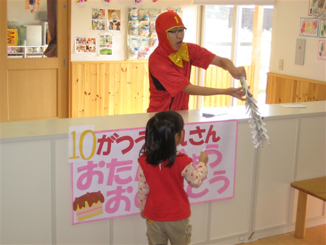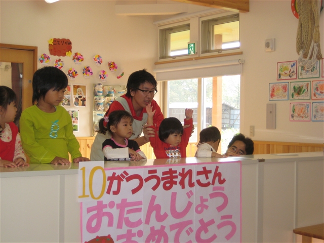 しているではありませんか!!! まずは、皆さんにお礼を!! ちなみに、自分でもいつ始めたかのか良くわかっていません。 ん? ちょうど2年前の明後日ではないですか!!! (↑なんだか、パッとしません・・・。) ということは、20000hit÷24ヶ月=833人/月 833人÷30日=27人/日 ありがたいですねぇ~~!! 何の計算だかわかりませんが 心よりお礼を皆さんにお伝えして、今日は・・・・・。 誰ですか~? PCの前で「え~~~~~・・・」って、言っている人は! はい!今日のどんぐりさんは 「10月生まれのお友達のお誕生会」です!! 今日は5人のお友達が、お祝いしてもらいましたよ!! えっ~と、司会の先生とこのマスクの方の関係については あまり触らずに・・・。 今日の先生の出し物は手品!! 人間って不思議なもので すごい事に集中していると 口が開いてしまうのですね・・・。 ちなみに、花火大会もそうです。 気になる人は、花火を見ずに後ろの人を見てみて下さい 9割がたの人は口があいてます・・・・。 おっと、脱線、失礼 それでは、驚くどんぐりっこの様子を高画質でお届け!! ねっ、口が・・・・ねっ。 でも、先生方が一番見たいのは お友達の最高の笑顔!! 子ども達の笑顔には、ウソが無い。 子ども達の笑顔をたくさん見ることが出来る仕事を 沢山したいと、いつも思っています。 どんぐりは、そうありたい。 そうあったらいいな。 そうあるために・・・・。 今日のニュースで 「少子化対策で基金創設検討=1500億円規模-政府が発表」 などが、ありましたが、お金じゃないのですよね・・・・。 この続きは、明日にでも・・・。 あれ?不定期更新?ん? 解散!! PR