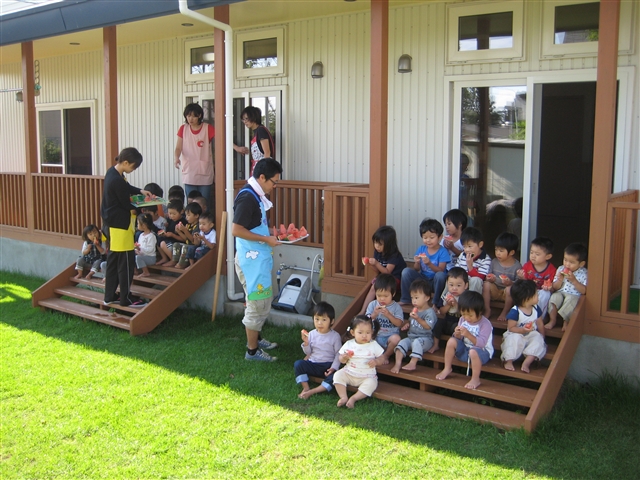 「すいか割り」 大きいスイカですねぇ~!! すいか割りの後は・・・ もちろんみんなで美味しくいただきました!! う~~~ん、テラスでスイカ!! 夏っぽい!!と思うのは、えんちょうだけでしょうか? 「昭和公園」で園外保育!! りす組・うさぎ組・きつね組 みんな仲良く楽しんできました!! そんな、夏休みも終わり 今日からは、2学期です!! 元気な「どんぐりっこ」の声が、響き渡ります。 さぁさぁ、2学期も飽きずに「えんちょう日記」をよろしく・・・。 そうそう、先日の札幌出張の帰りの電車での出来事です。 電車の車内を見渡すと、見たことある方々が・・・。 同じ、研修会に出ていた方々でした・・・。 ひとこと、物申~~~~す!! 函館市内幼稚園のお偉い先生方