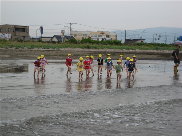 「七重浜の海岸!」 今日は「大潮」だったので、とても遠浅の砂浜でした!! 遠浅のおかげで、面白い方向から写真が撮れました! 「わ~い!」と果敢に海に突っ込んで行く「海猿」の方々。 しかし、3秒後には・・・。 「うわぁ~」と、逃げ帰る方々・・・。 海は楽しいですよ!! ついつい、夢中になって・・・。 「えっ?お尻ですか?濡れてませんって!!」 「お尻から水滴?気のせいですよ・・・多分、錯覚だと・・・。」 今日の発見!! 野生の牡蠣(かき)発見!!! 水質的に、食べることは出来ないと思いますが、結構な大きさです。 えんちょうの片手ぐらいありました!! 色々書きたいことは、ありますが今日は無理そうなので・・・。 明日、書けると良いなぁ~・・・。 えっ?明日って「金曜日?」・・・早っ! では、また明日 解散!!